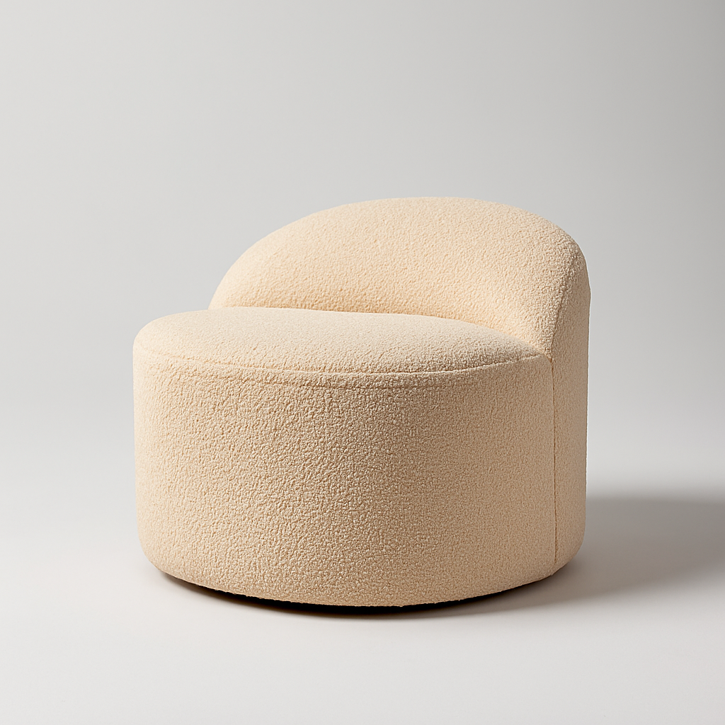 The Aver Ottoman embodies minimalist elegance through its rounded, sculpted silhouette and soft beige boucle upholstery. Its curved top and seamless base design create a feeling of quiet sophistication — perfect as a lounge companion, bedroom accent, or a refined statement in living spaces.